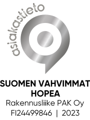 Yritys Bisnode Finland Oy on vuonna 2023 myöntänyt Rakennusliike PAK Oy:lle alhaisimman luottoriskin luottoluokituksen, joka kuvastaa yrityksen luottoriskiä Dun & Bradstreetin luottoriskiluokituksen perusteella. Voit tutustu sertifikaatteihin tässä.