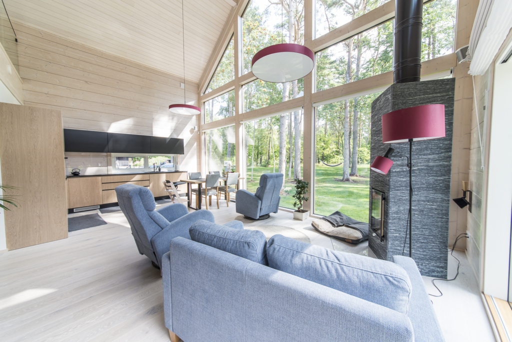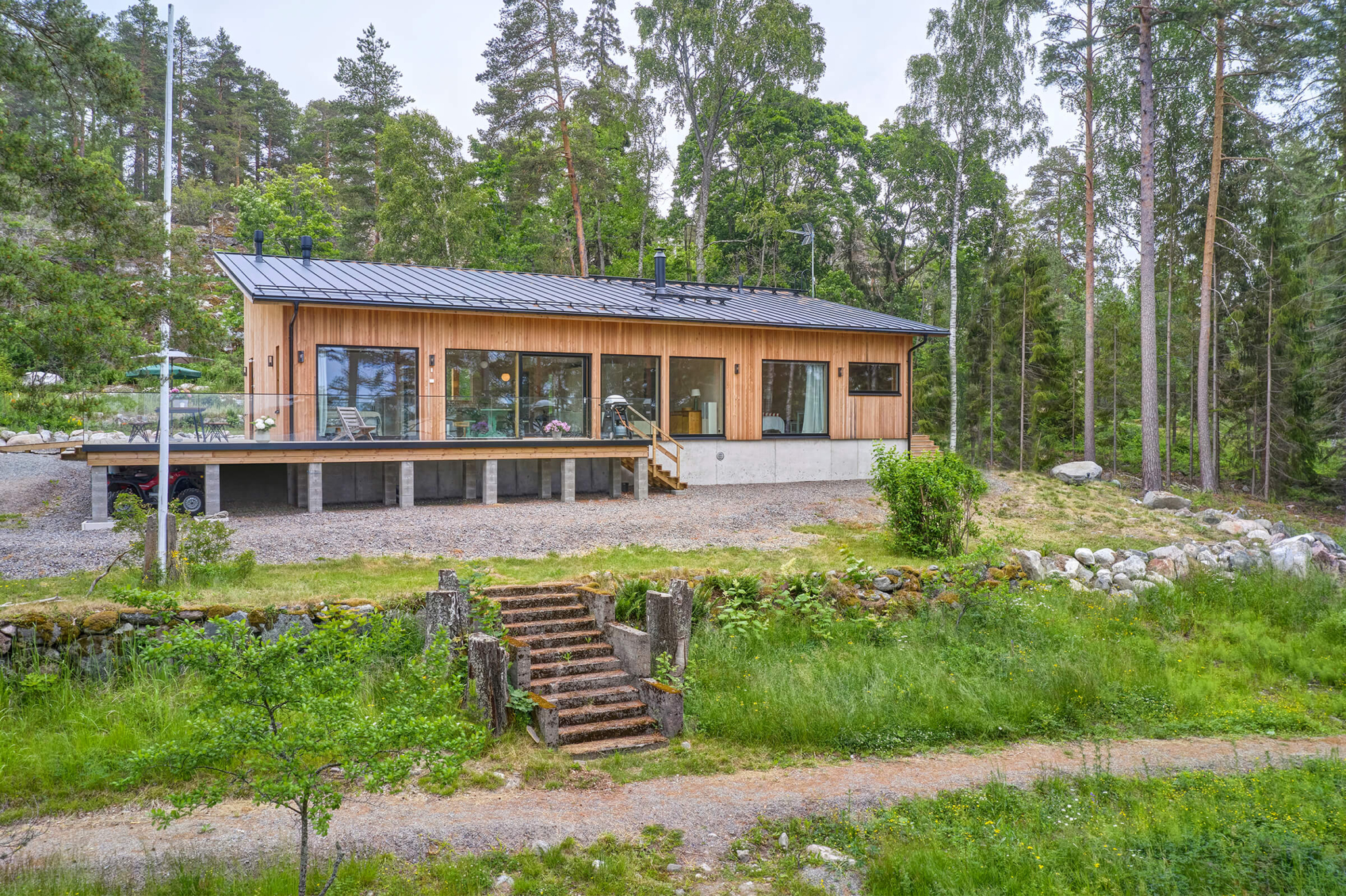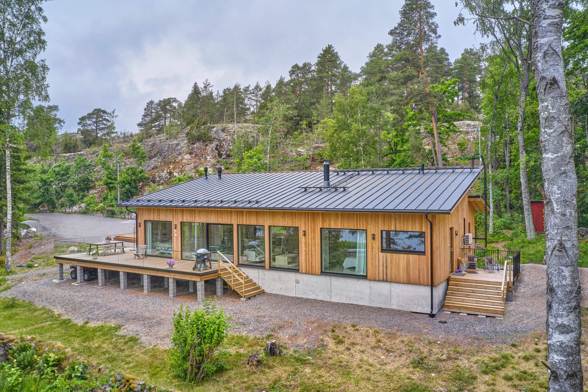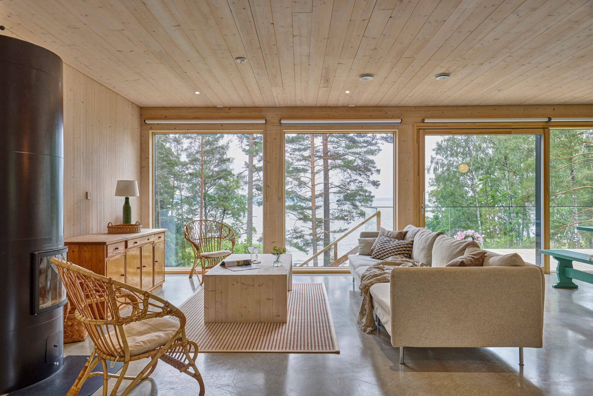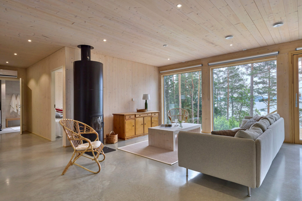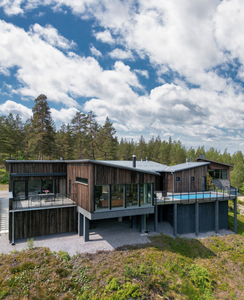Finnlog toteutti arkkitehti Marko Simsiön (KOAN-arkkitehdit) suunnitteleman vaikuttavan vapaa-ajan asunnon Lohjalle.