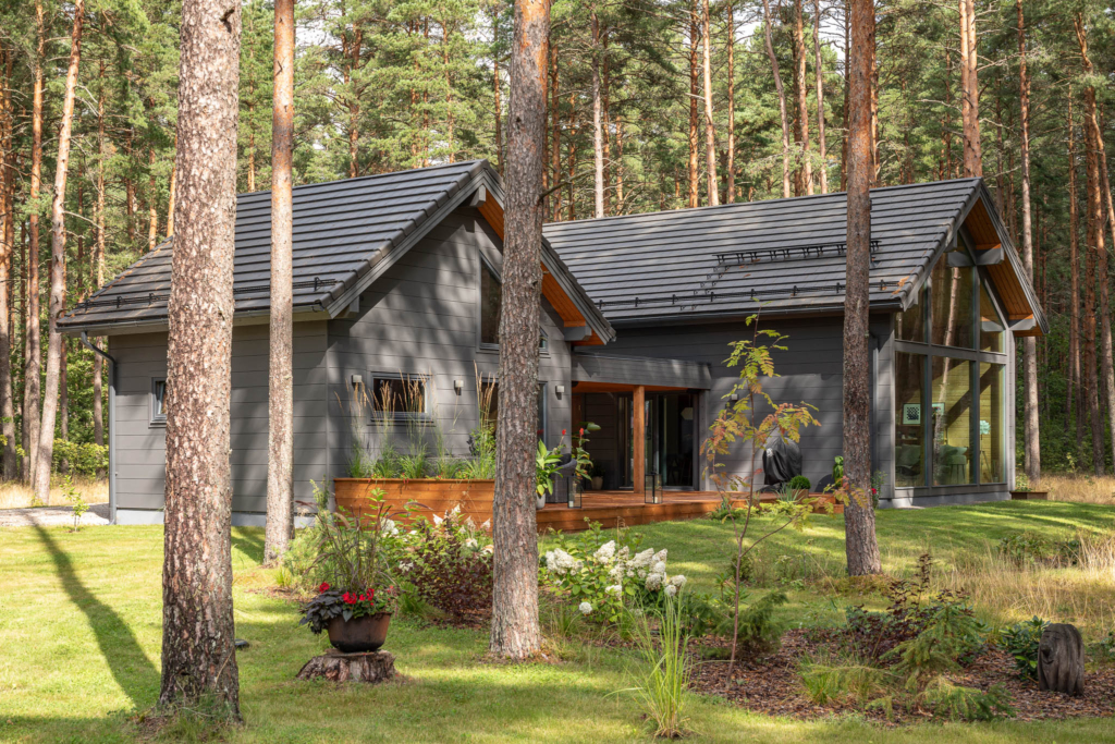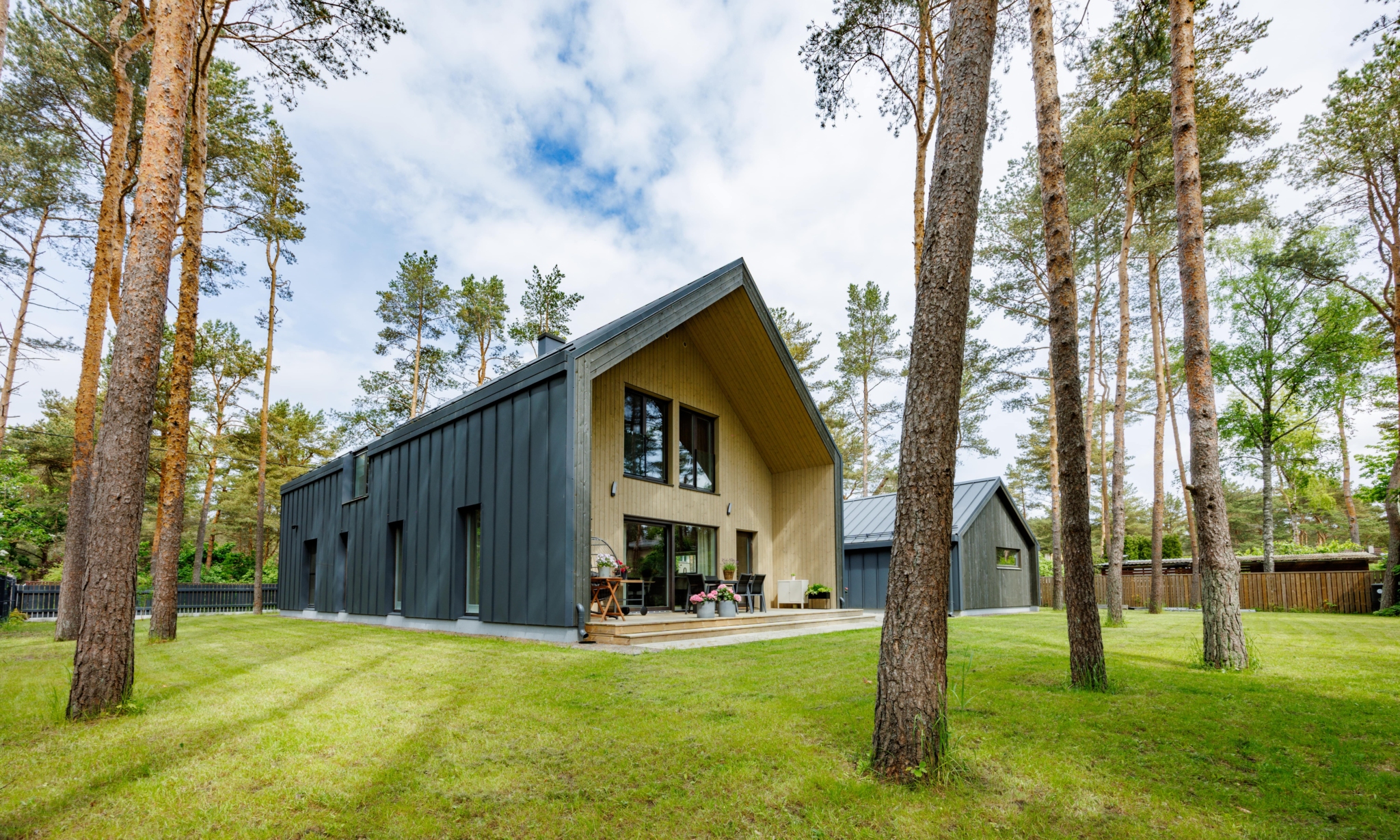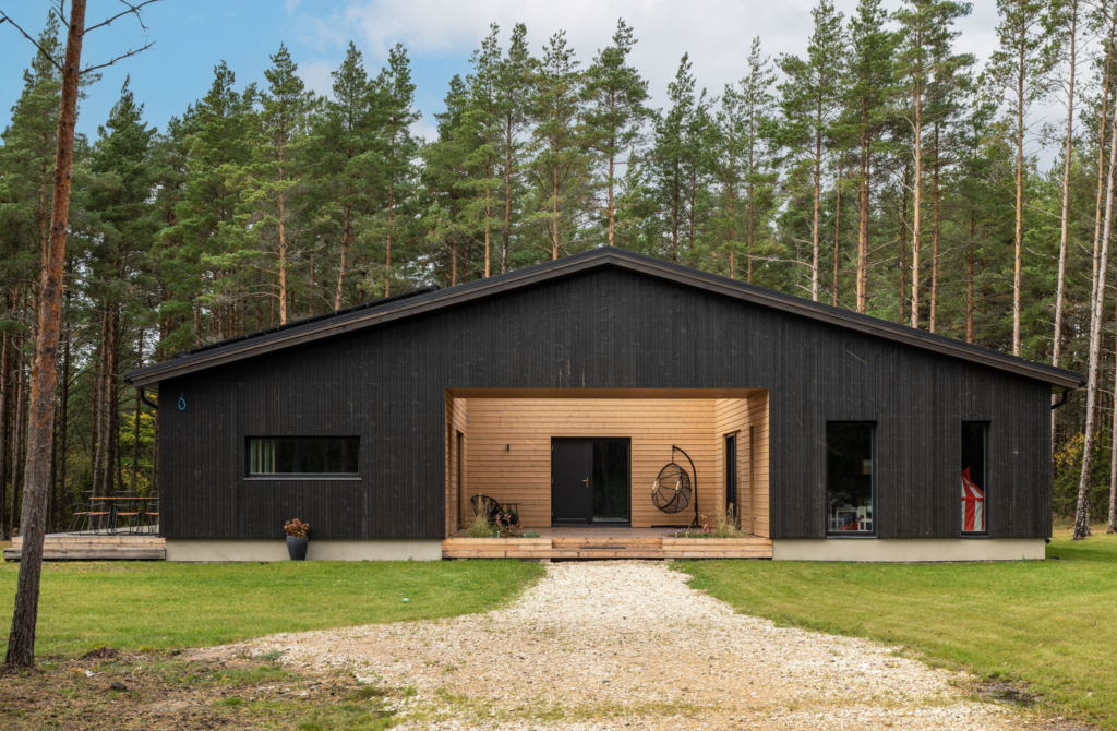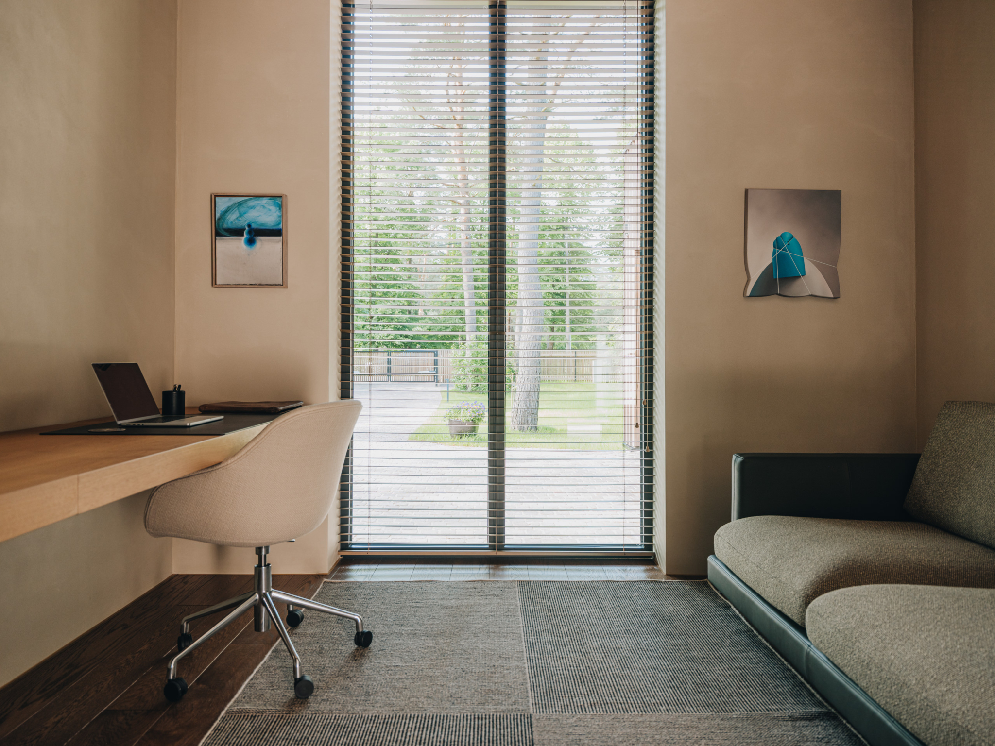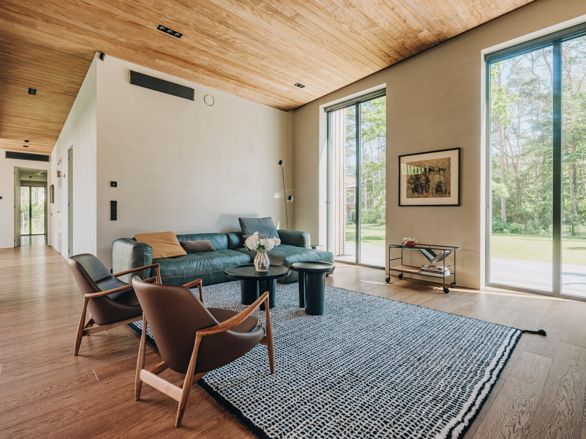 Rakensimme persoonallisen omakotitalon Viron Nõmmen alueen tyypilliseen männikkömaisemaan, jossa korkeat puut kehystävät näkymiä ja valo piirtää ympäristöönsä ainutlaatuisen tunnelman vuodenajasta riippumatta. Tontin tavallista suurempi koko mahdollisti ratkaisun, joka on harvinainen alueella: avaran yksikerroksisen kodin, jossa kaikki tilat levittäytyvät maan tasoon ja yhteys luontoon säilyy esteettömänä.