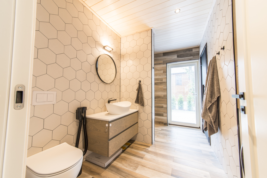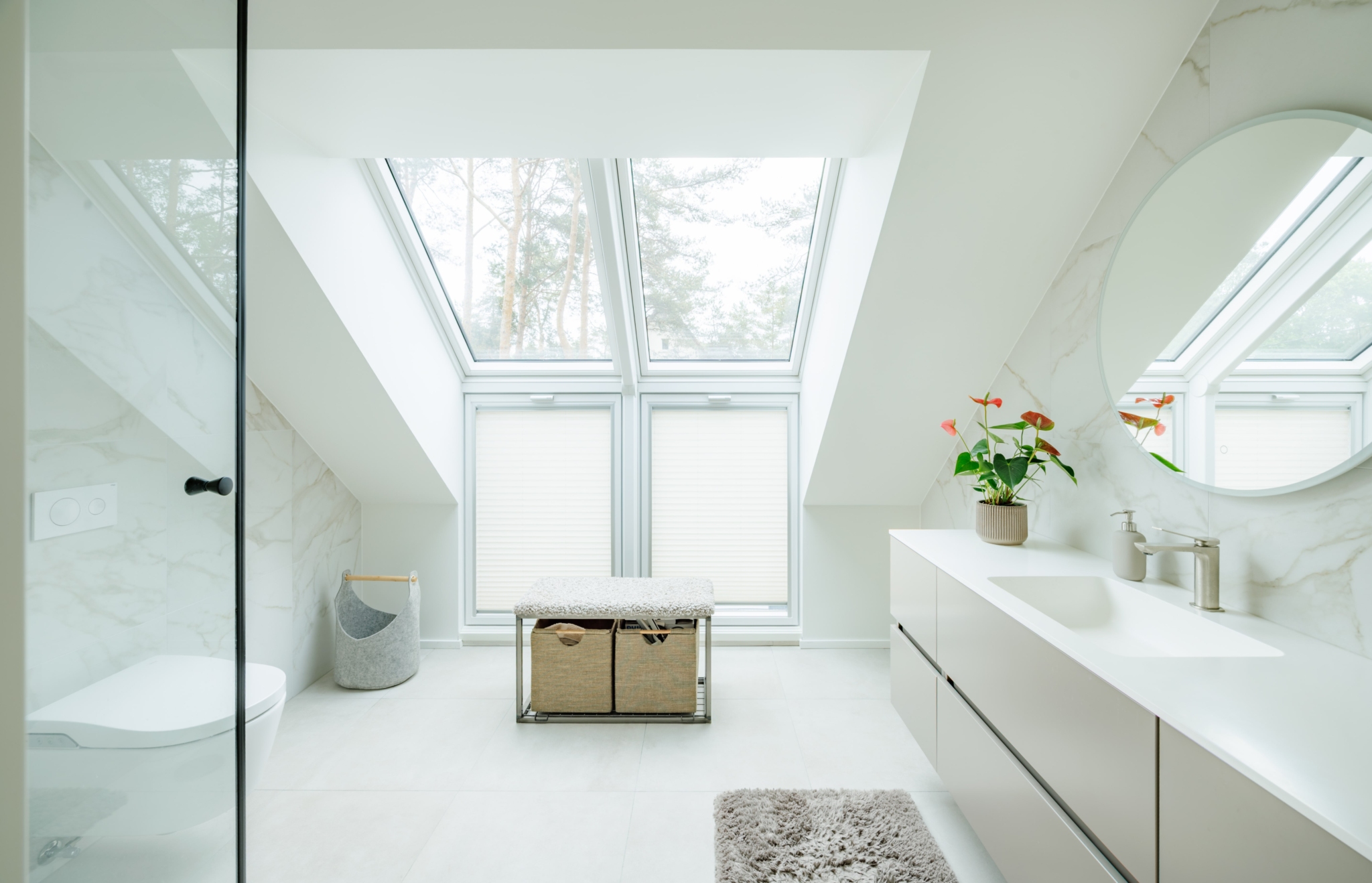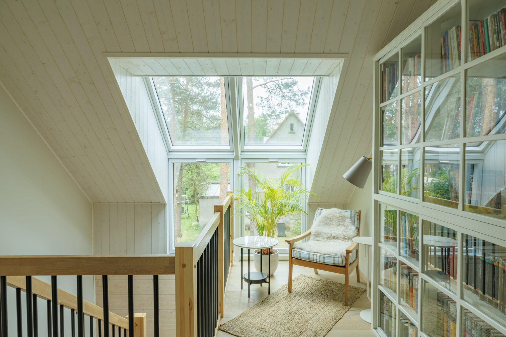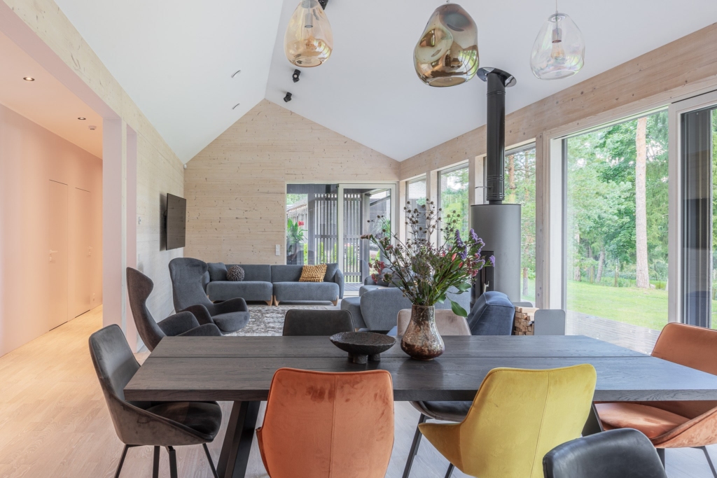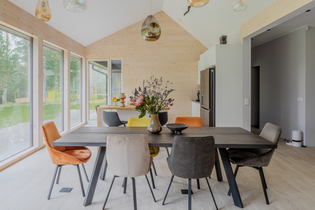Rakensimme persoonallisen omakotitalon Viron Nõmmen alueen tyypilliseen männikkömaisemaan, jossa korkeat puut kehystävät näkymiä ja valo piirtää ympäristöönsä ainutlaatuisen tunnelman vuodenajasta riippumatta. Tontin tavallista suurempi koko mahdollisti ratkaisun, joka on harvinainen alueella: avaran yksikerroksisen kodin, jossa kaikki tilat levittäytyvät maan tasoon ja yhteys luontoon säilyy esteettömänä.