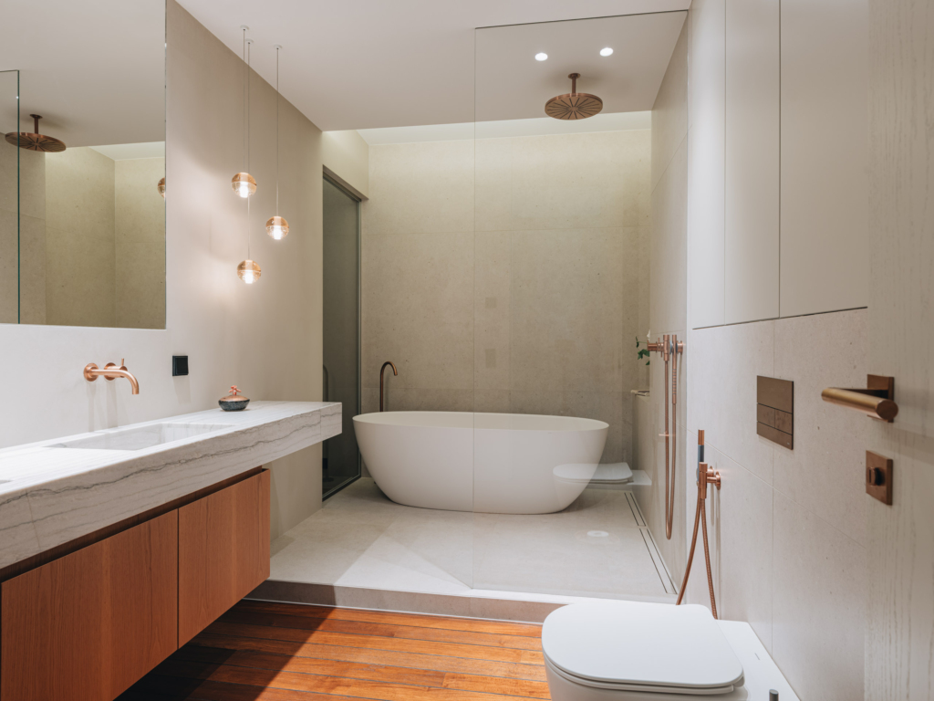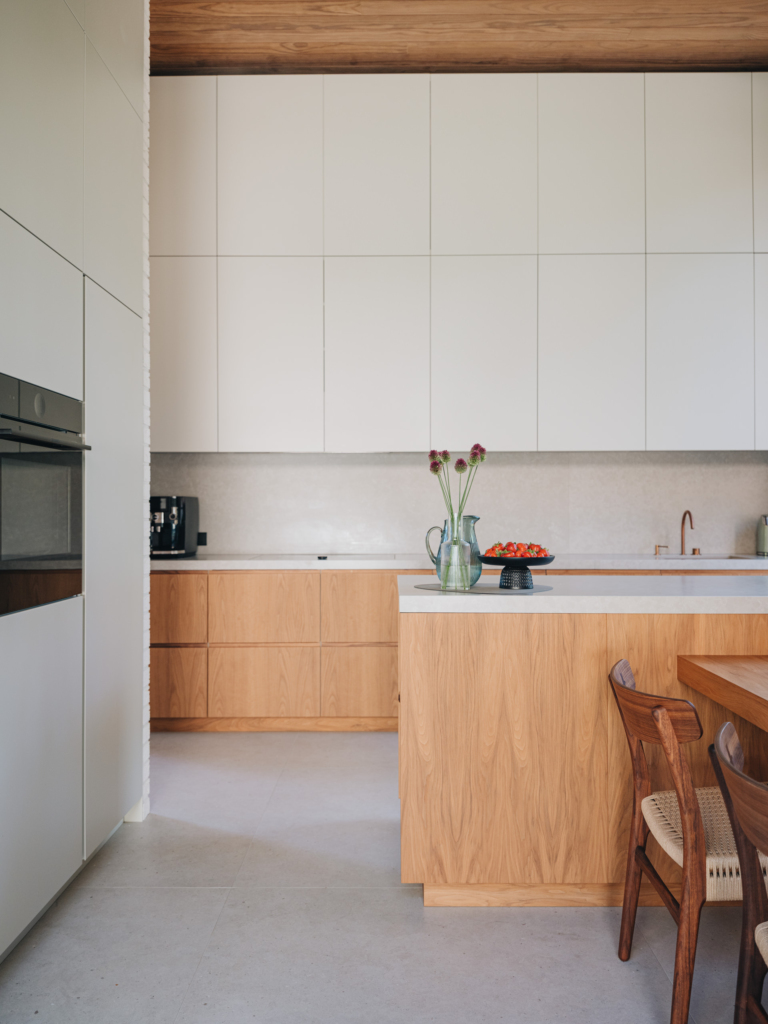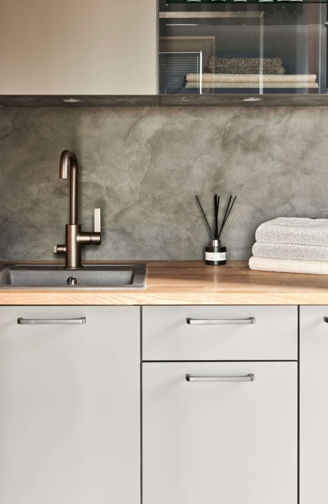 Asiakas on pitänyt sisätilojen ilmeen pelkistettynä ja yhtenäisenä.