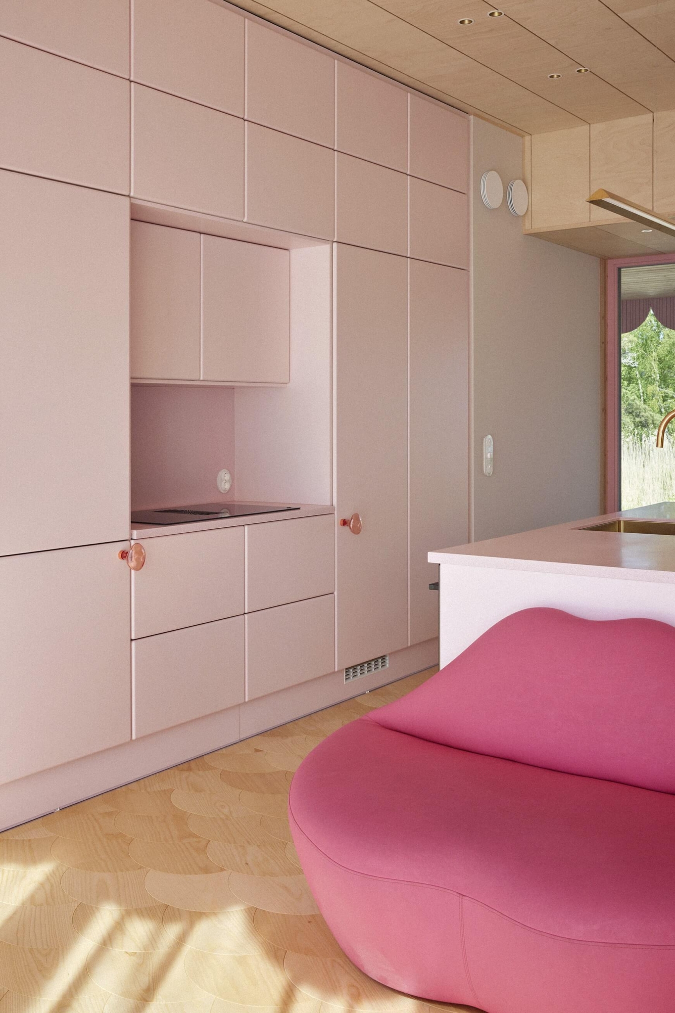 Rakennuslupahakemusta jouduttiin tarkentamaan, sillä vaaleanpunainen julkisivu ei ole perinteinen väri saaristossa. Talo sai kuitenkin rakennusluvan. Se saattaa hyvinkin olla maailman ainoa vaaleanpunainen CLT-talo.