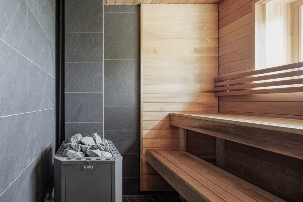 Toive oli saada erillinen saunarakennus ja asuinrakennus, jotka yhdistyvät toisiinsa terassilla.