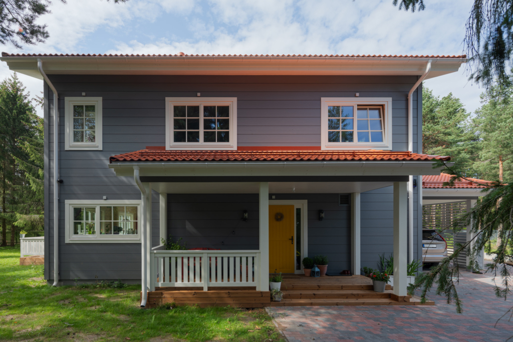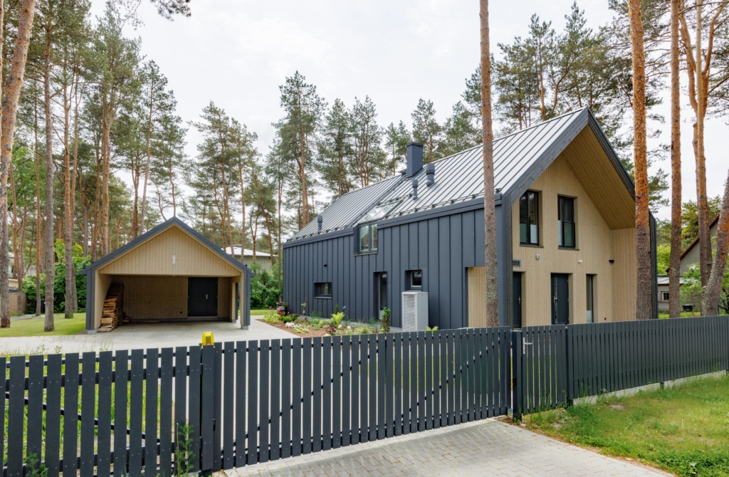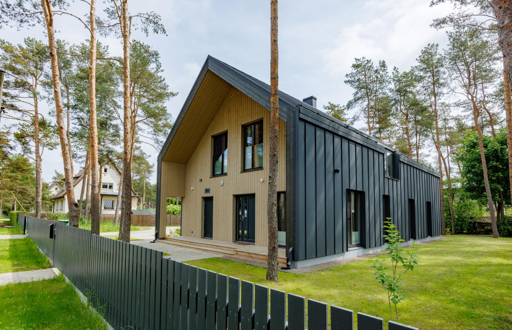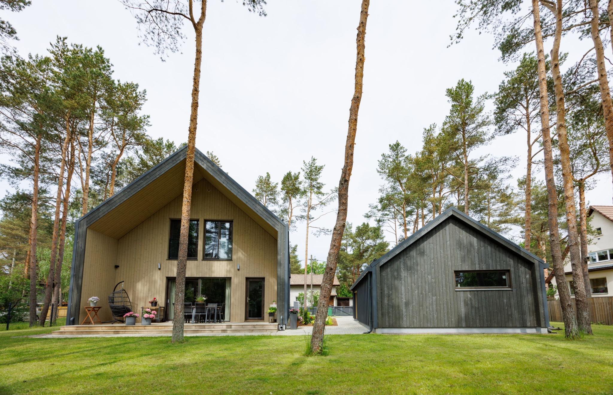 Rakensimme modernin omakotitalon ja talousrakennuksen arvokkaaseen miljööseen. Rakennus sijaitsee Virossa, kauniissa puutarhakaupunginosassa. Arkkitehtoninen muoto mukailee alueen muita rakennuksia, mutta modernit materiaalivalinnat erottavat sen joukosta.