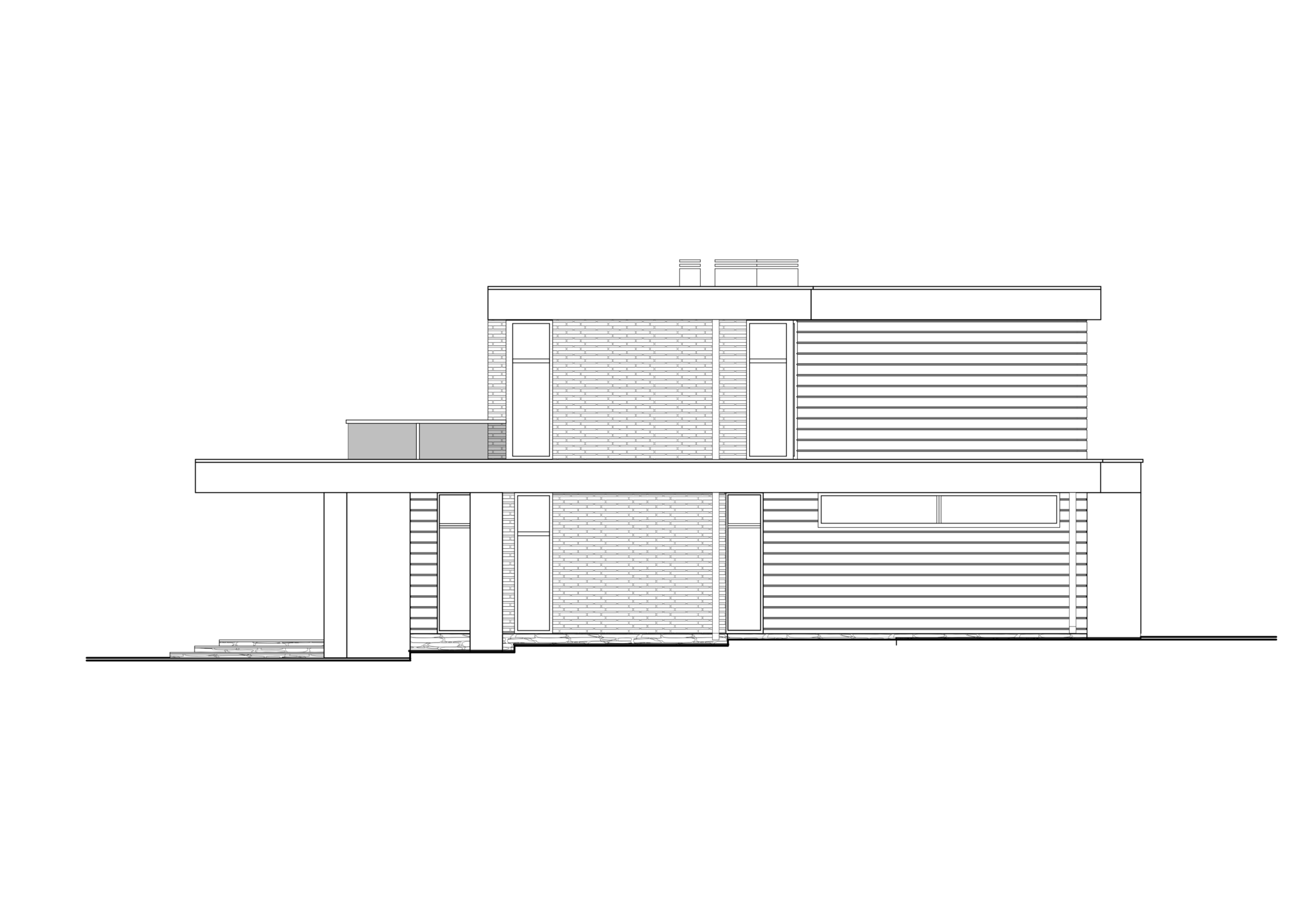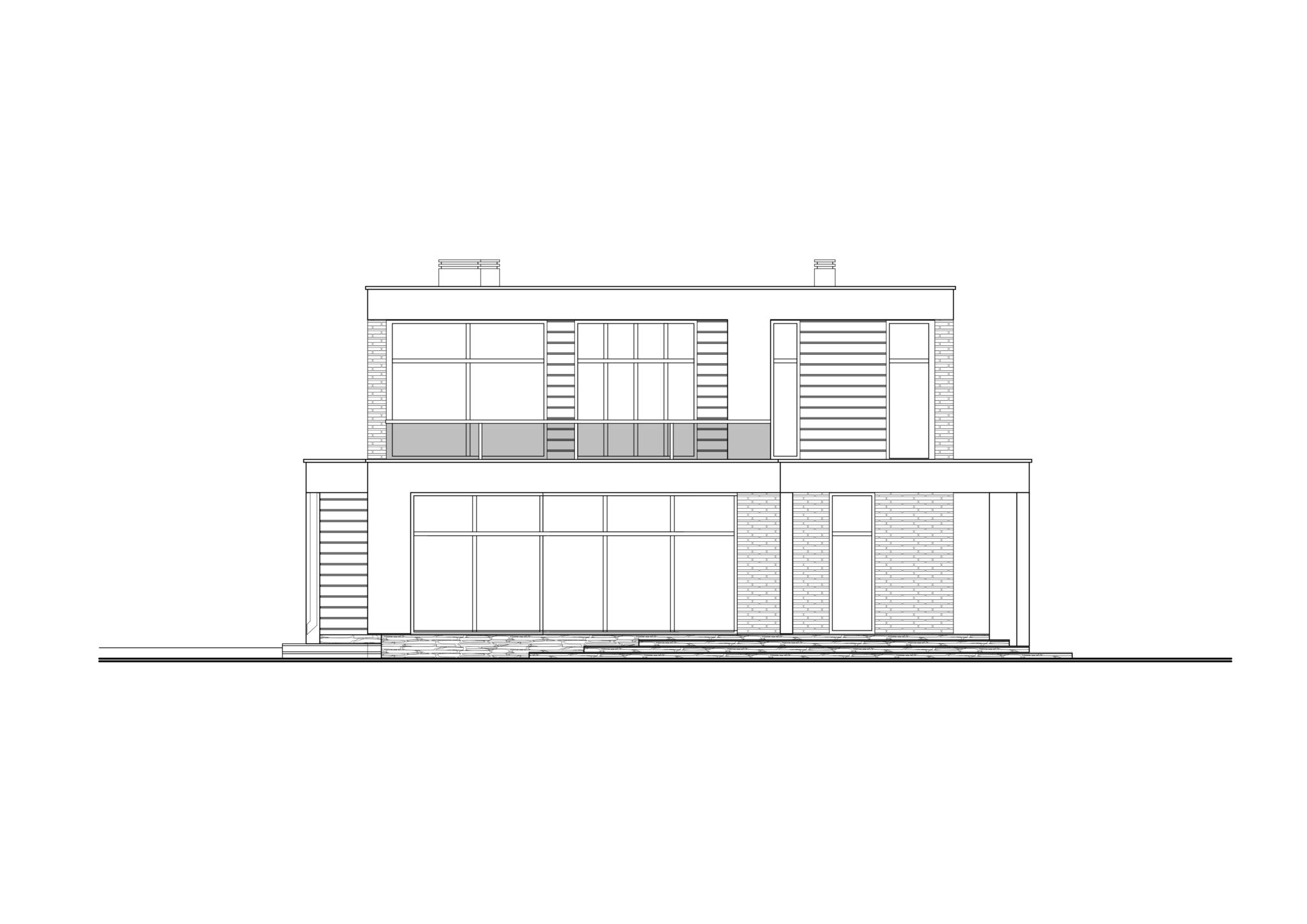 Hallin kautta on kulku vaatehuoneeseen, kylpyhuoneeseen ja kodinhoitohuoneeseen. Ensimmäisestä kerroksesta löytyy myös tekninen tila, johon on oma sisäänkäynti suoraan kadulta. Olohuoneesta avautuu kulku sisäpihan tilavalle terassille.