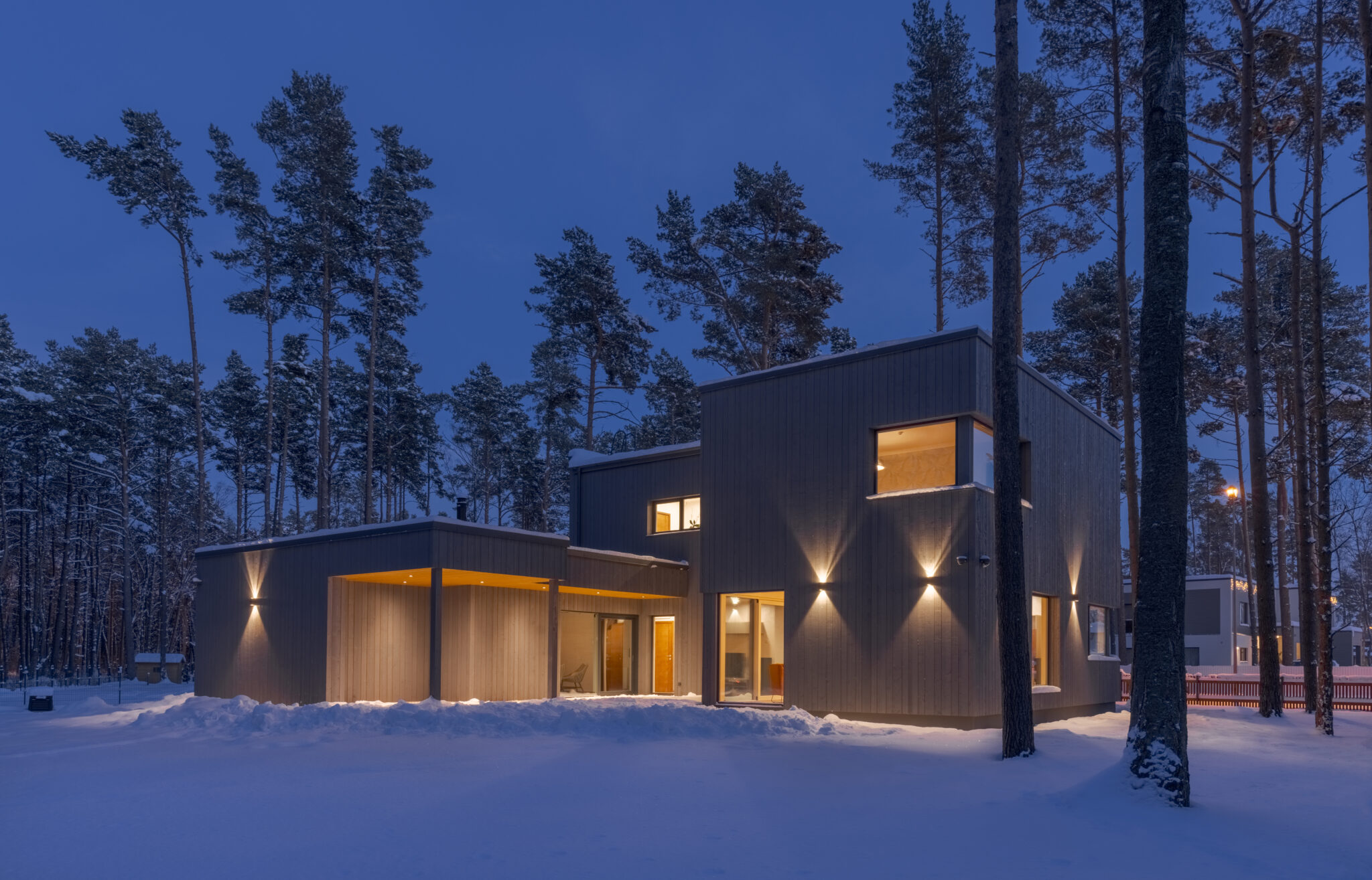 Moderni massiivipuutalo – sähköjohdot asennettu rakenteisiin